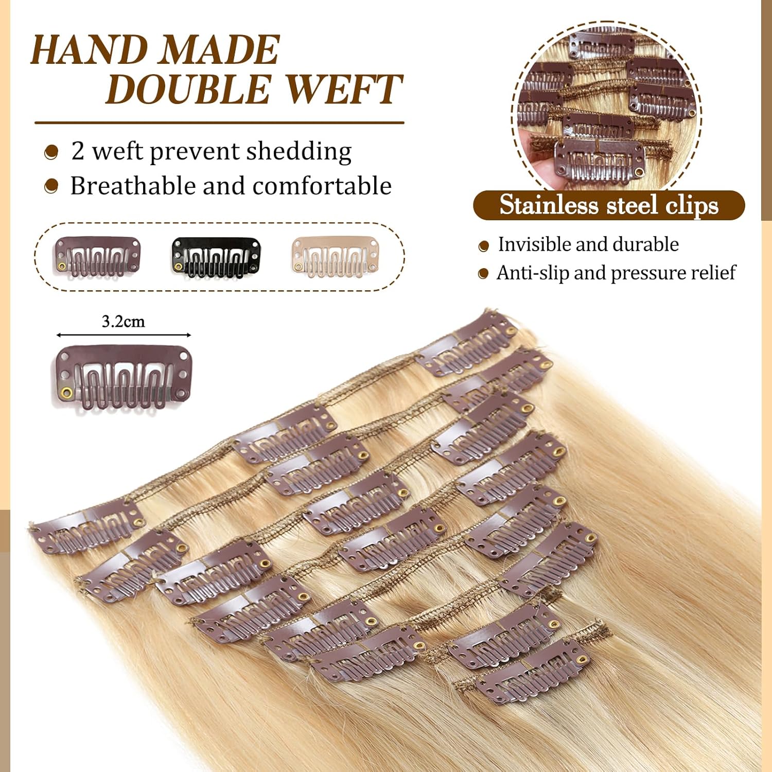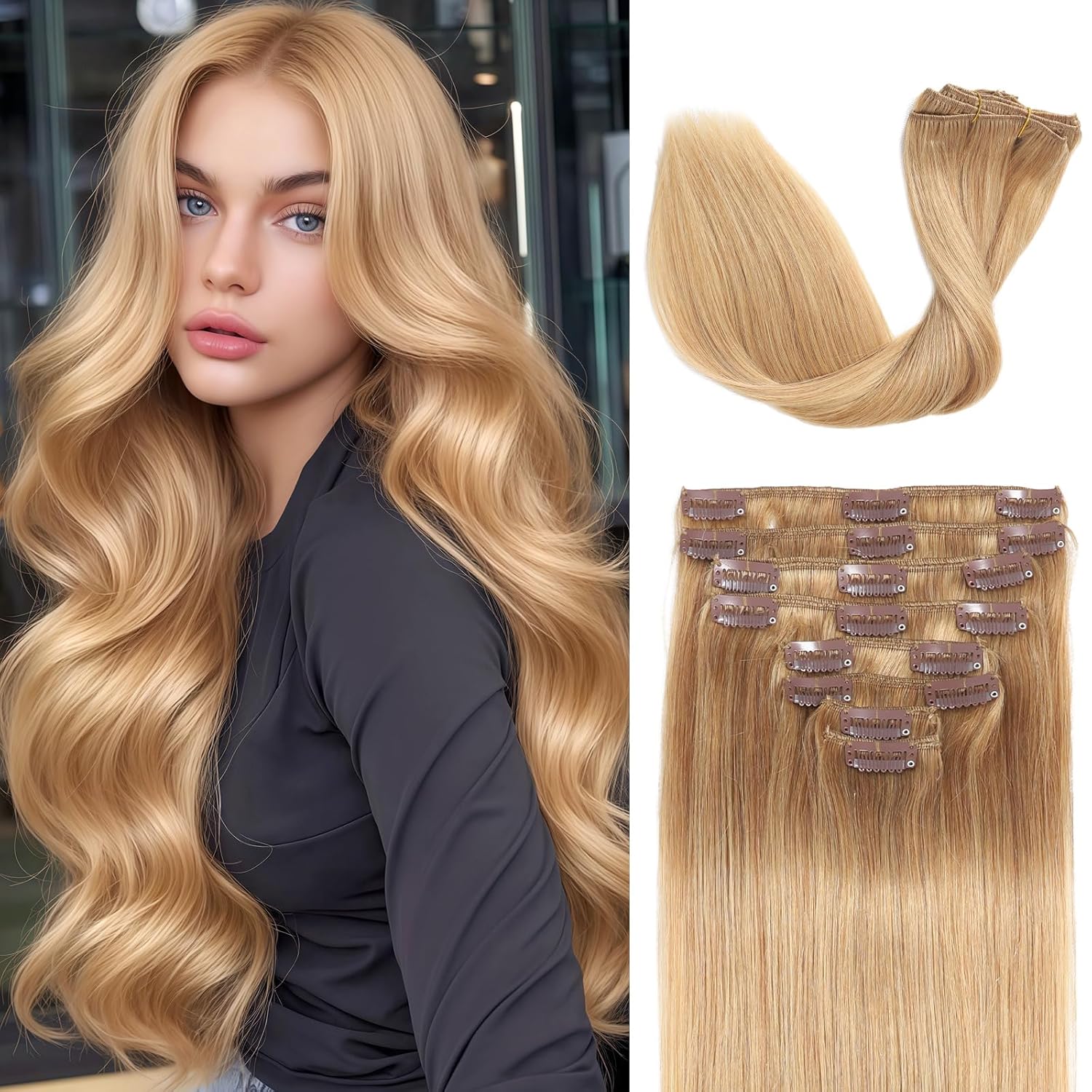 Clip in Hair Extensions Real Human Hair, 18 inch 100g/3.6oz, Balayage Invisible Remy Human hair Clip in Extensions for Women Seamless Straight 8Pcs Double Weft Dark Blonde Highlighted Bleach Blonde