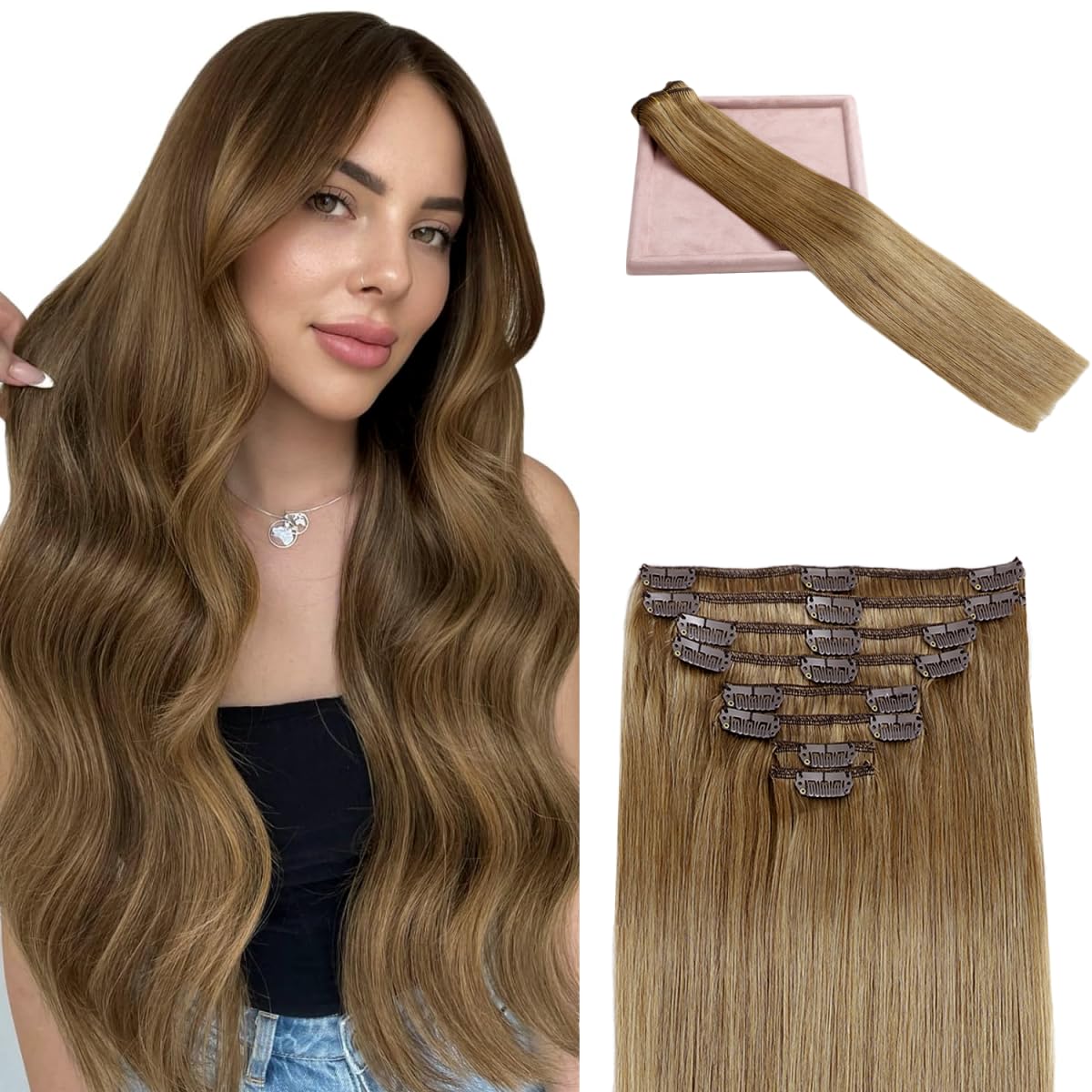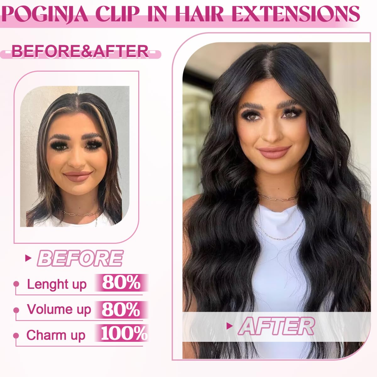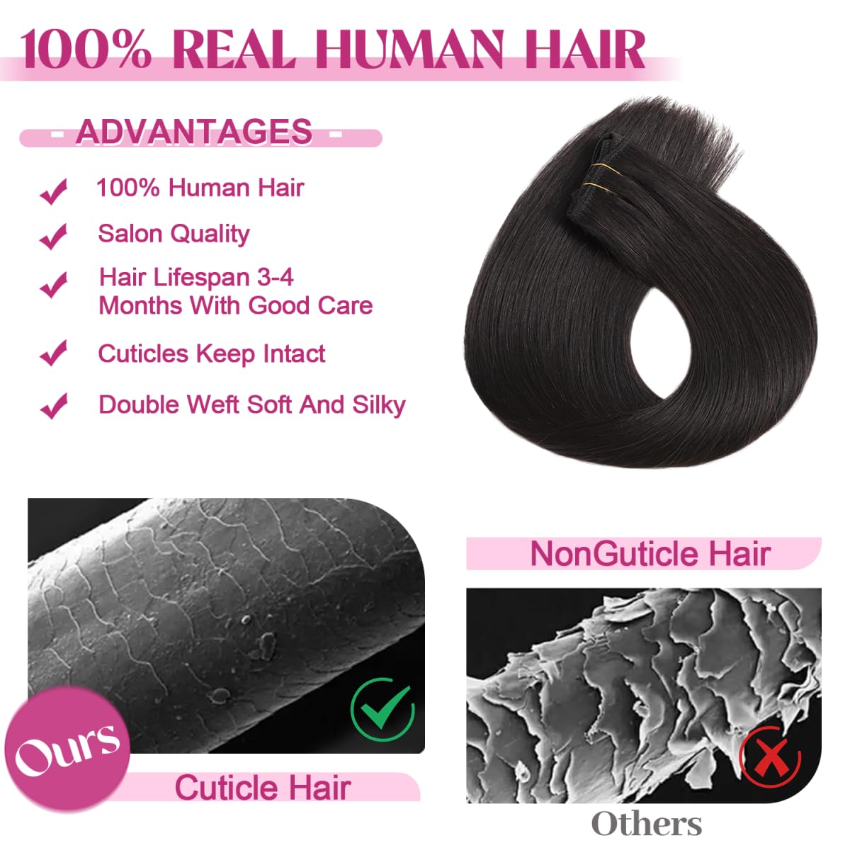 Clip in Hair Extensions Real Human Hair, 20 Inch 105g 100% Remy Human Hair Clip in Extensions for Women, Invisible Straight Seamless Clip ins Hair Extensions 8pcs Double Weft #1B Natural Black