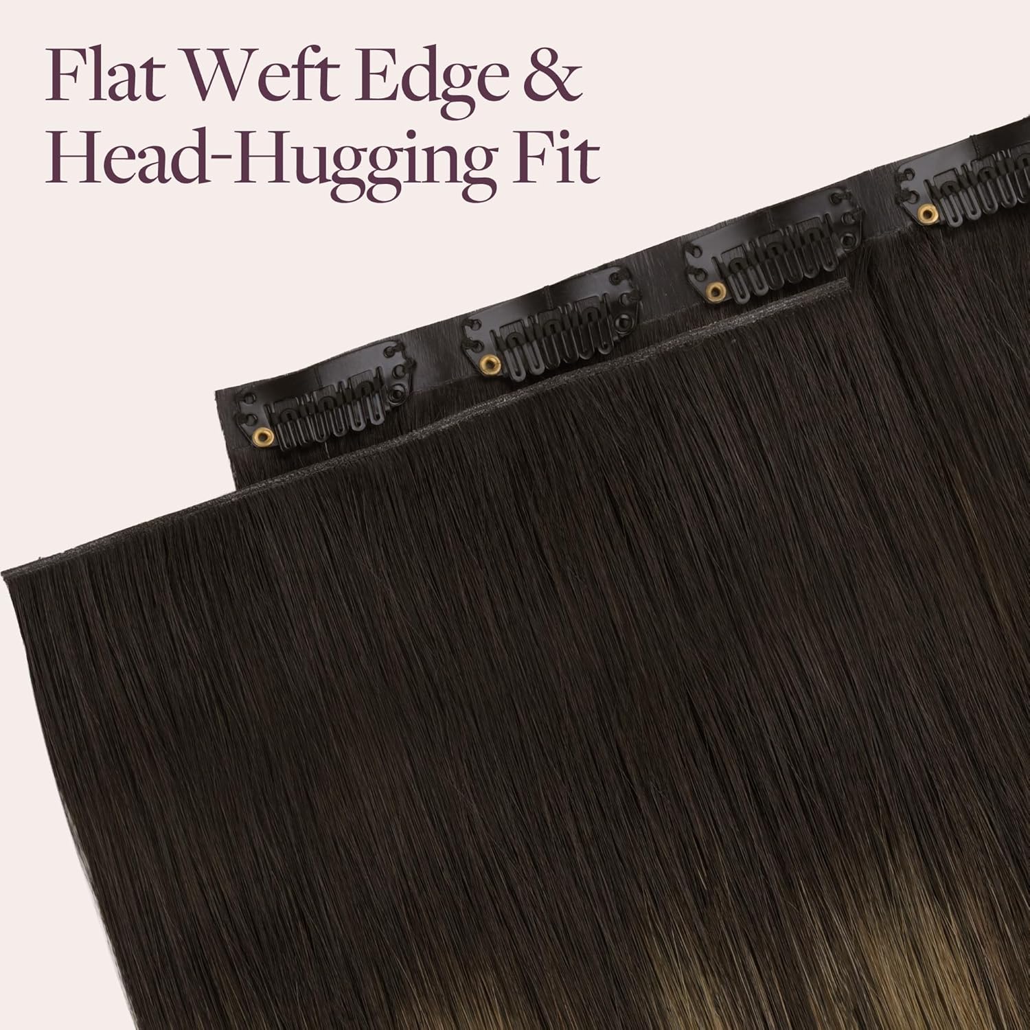 GOO GOO Genius Clip in Hair Extensions, 20inch 130g 7pcs, Seamless PU Clip in Hair Extensions, Virgin Real Human Hair, #(T2/6) P2 Dark Brown to Chestnut Brown