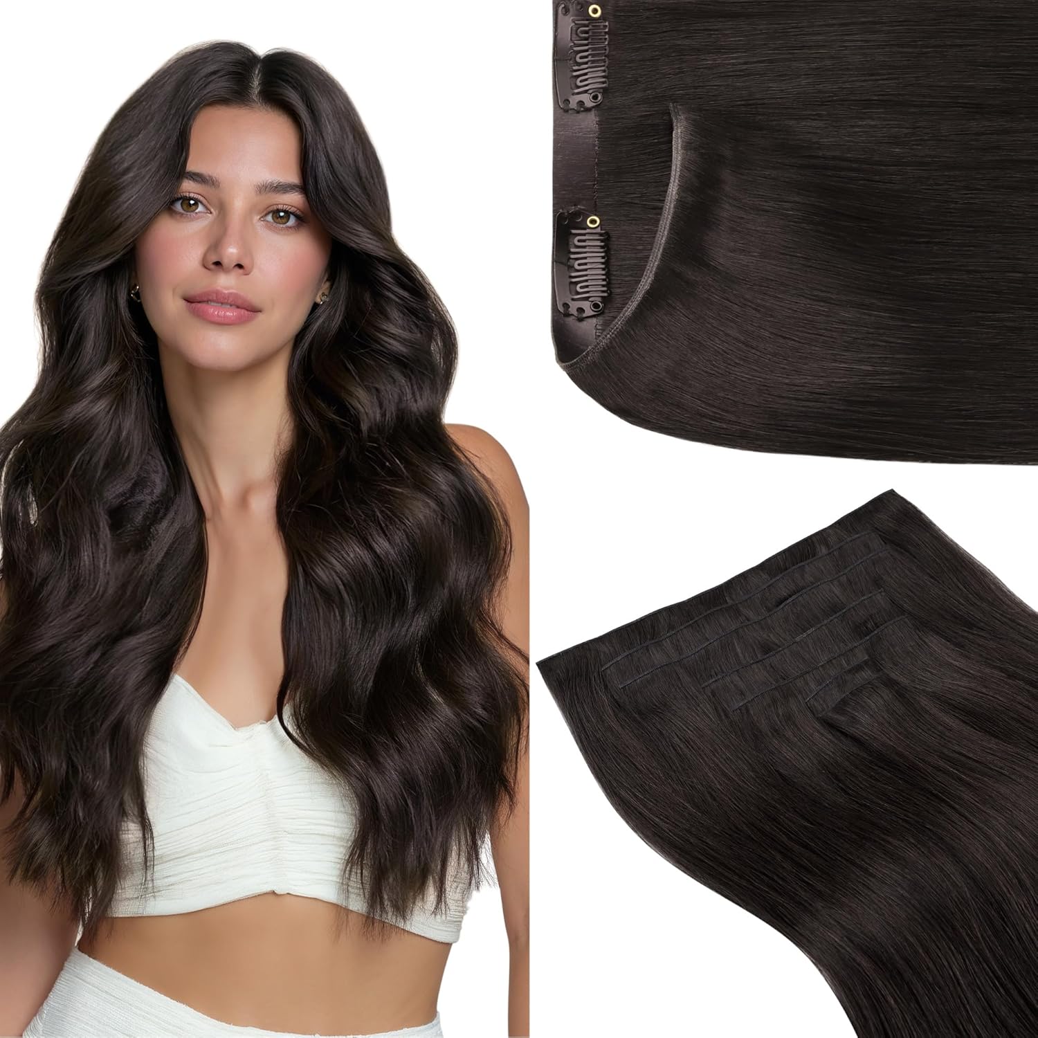 GOO GOO Genius Clip in Hair Extensions, 20inch 130g 7pcs, Seamless PU Clip in Hair Extensions, Virgin Real Human Hair, #(T2/6) P2 Dark Brown to Chestnut Brown