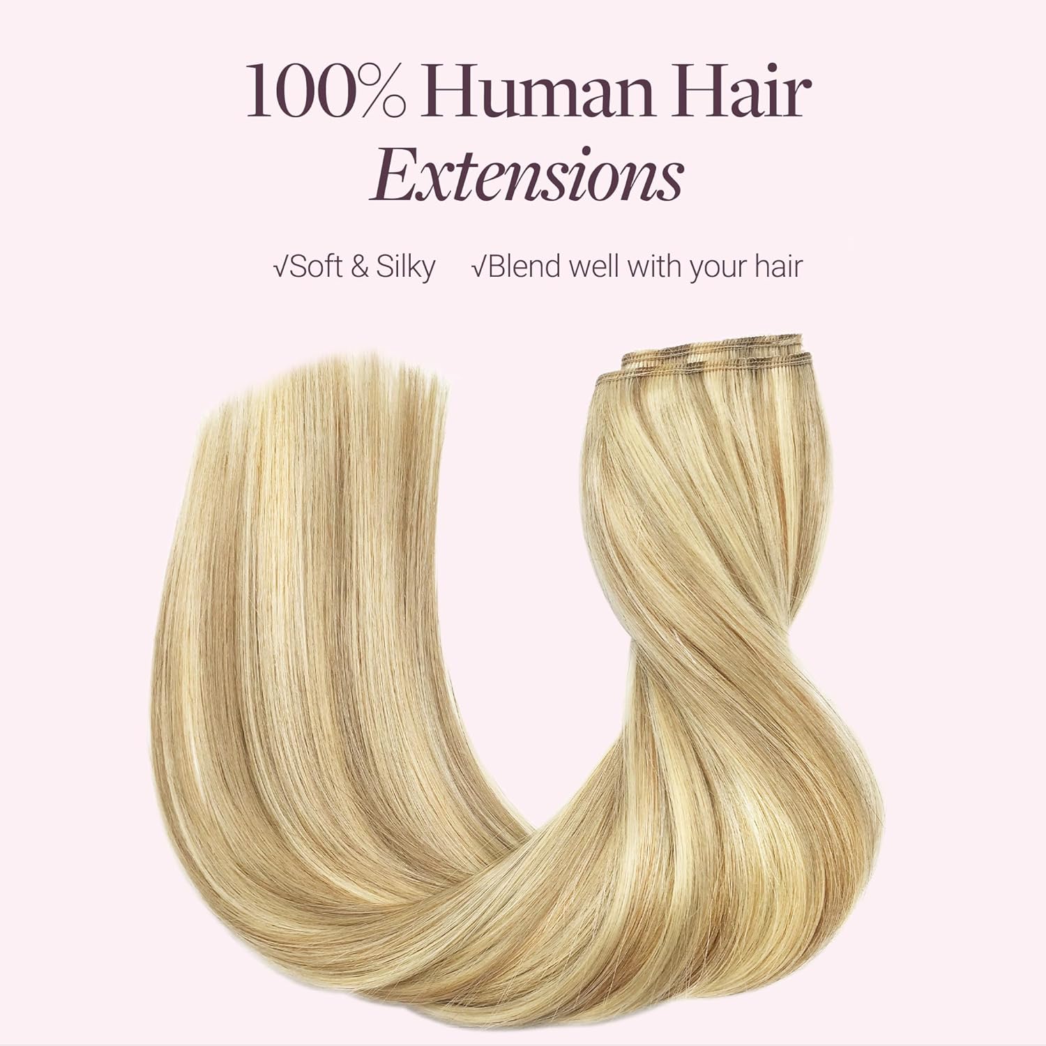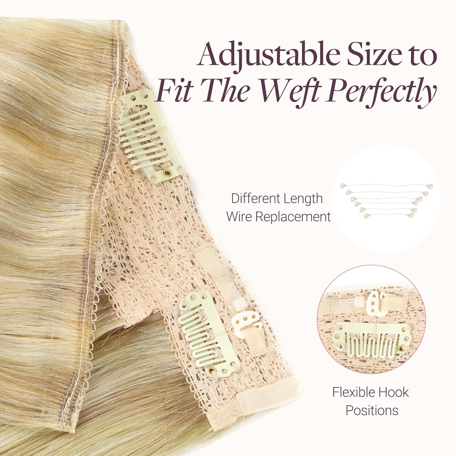 GOO GOO Wire Hair Extensions Human Hair, 16/22 Light Blondewith mix Golden Blonde Highlighted 14inch 75g, Invisible Wire Hair Extensions with Transparent, Seamless Fish Line Hairpiece