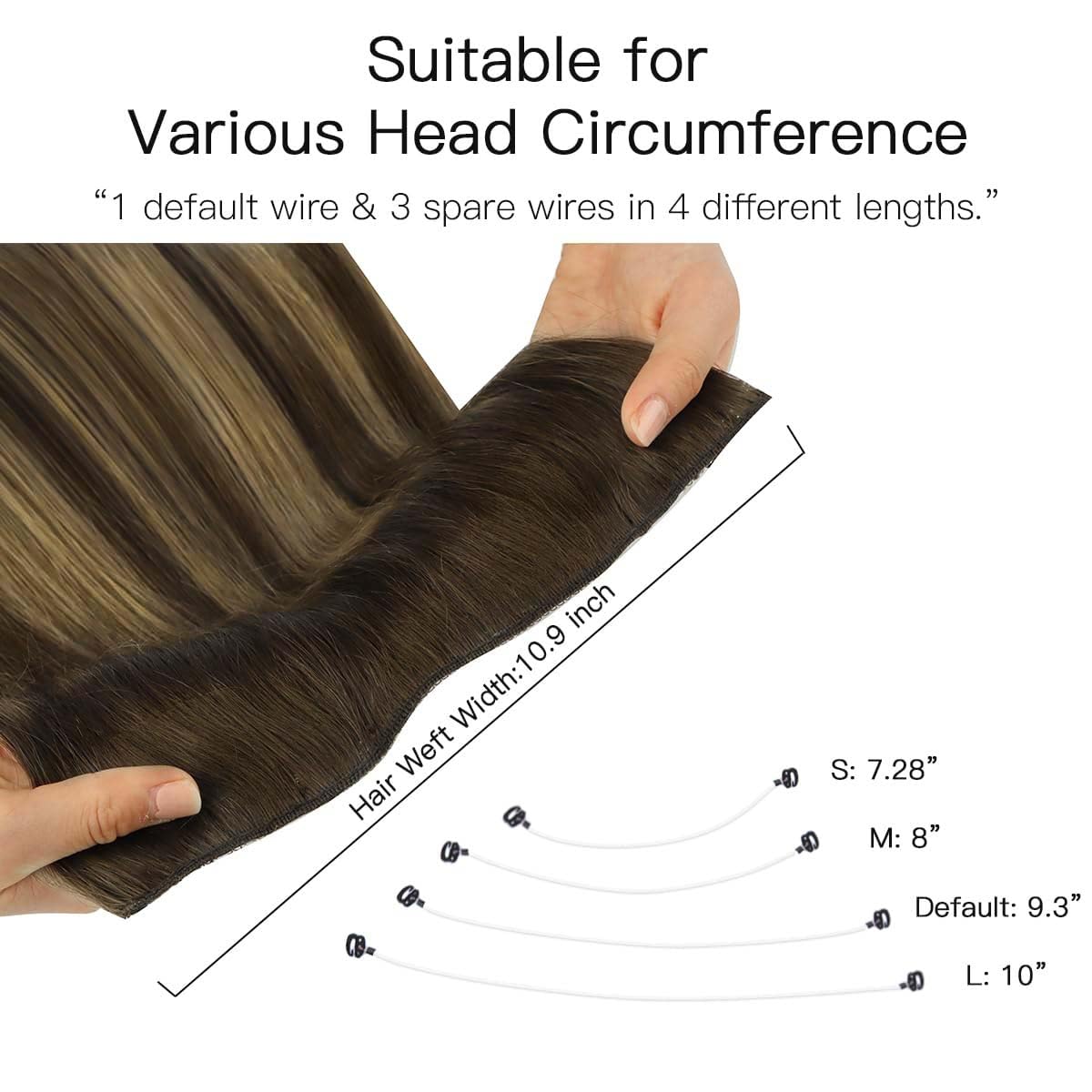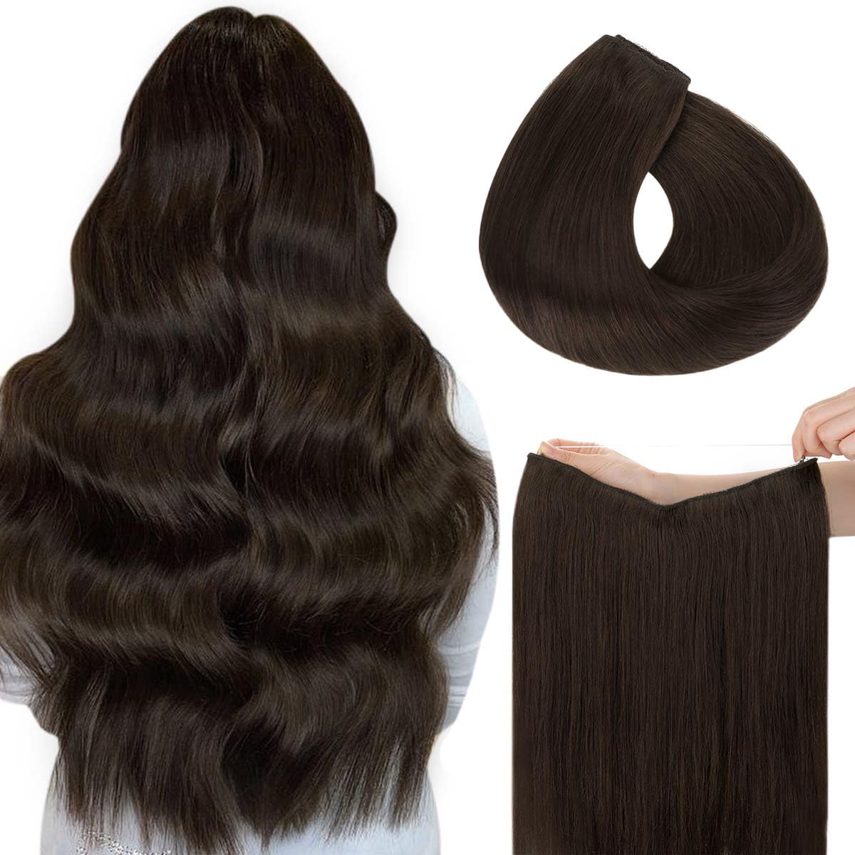 HOTBANANA Wire Hair Extensions, 18 inch 95g Chocolate Brown to Caramel Blonde Invisible Fish Line Real Human Hair Extensions Straight