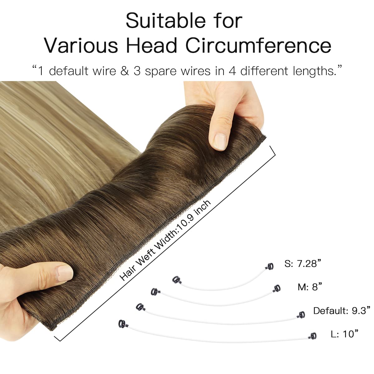 HOTBANANA Wire Hair Extensions, 18 inch 95g Walnut Brown to Ash Brown and Bleach Blonde Fish Line Hair Extensions Real Human Hair Straight Invisible Wire Remy