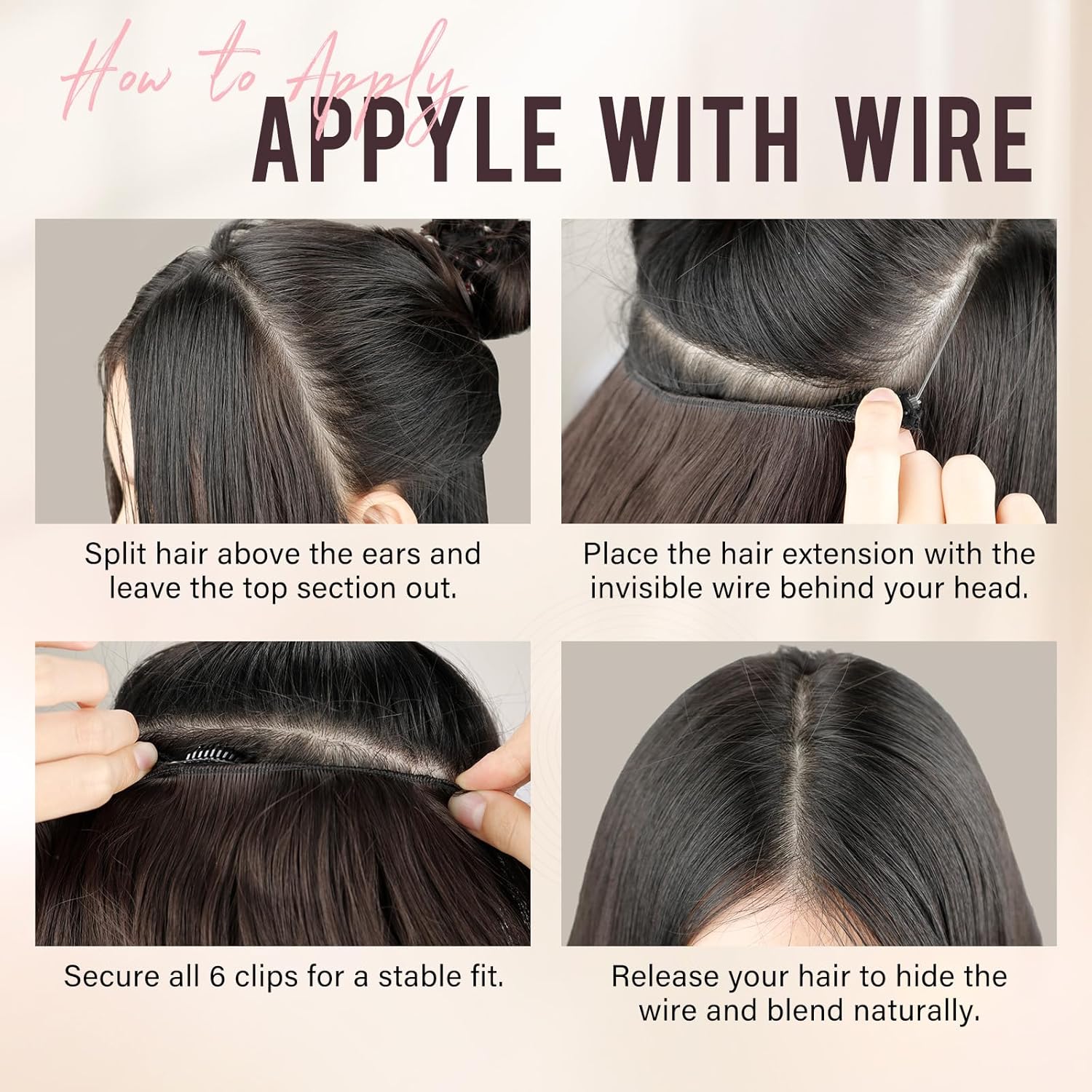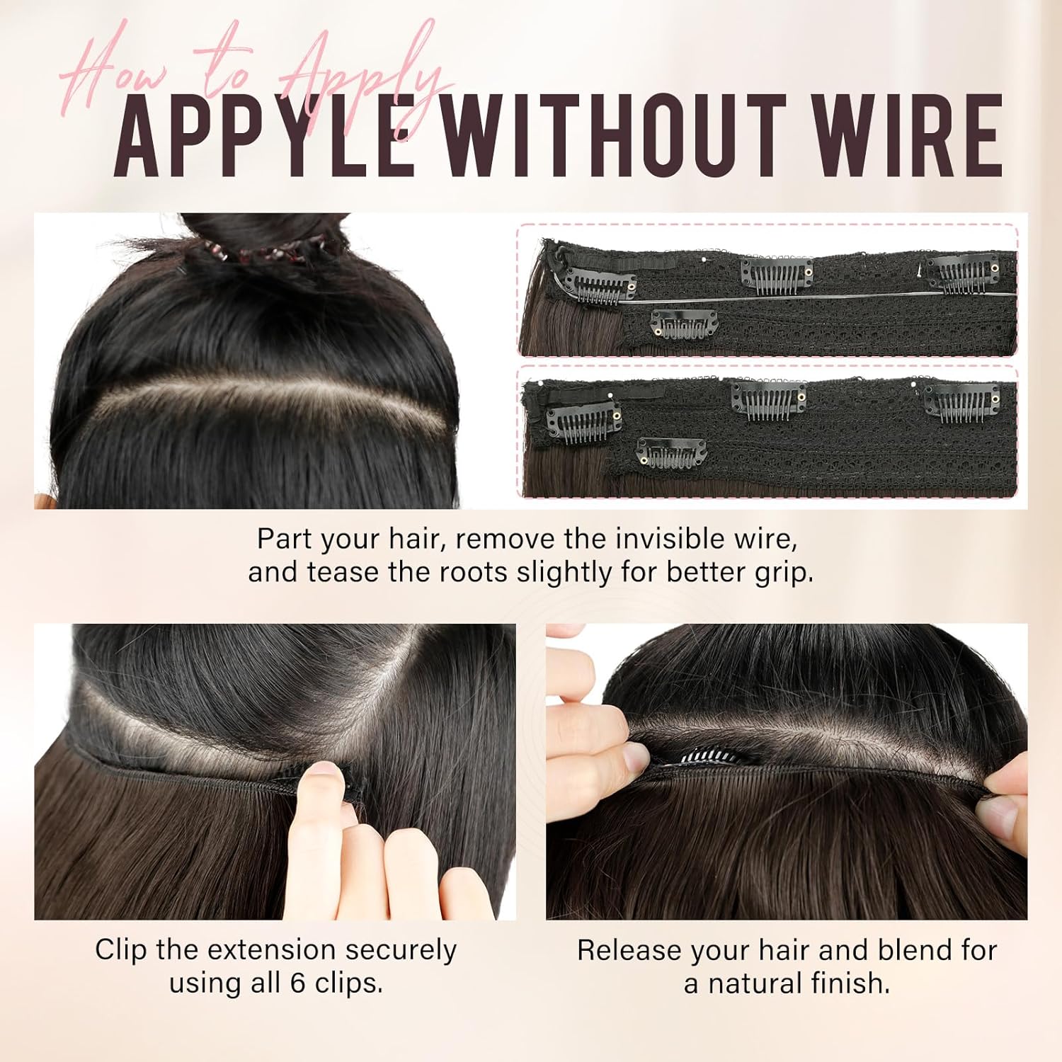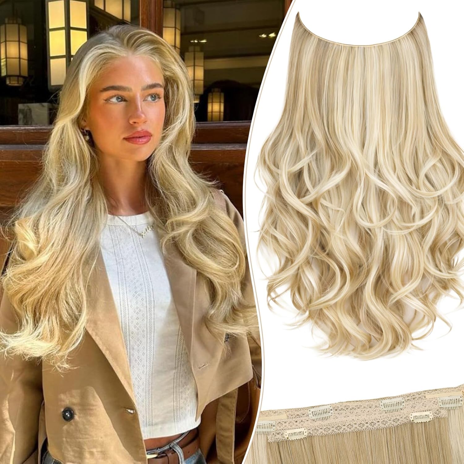 Kurope Layered Halo Hair Extensions with Invisible Wire Dark Brown Hair Extensions with 6 Secure Clips 20 Inches Long Wavy Layered Synthetic Hair Extensions for Women Daily and Party Use