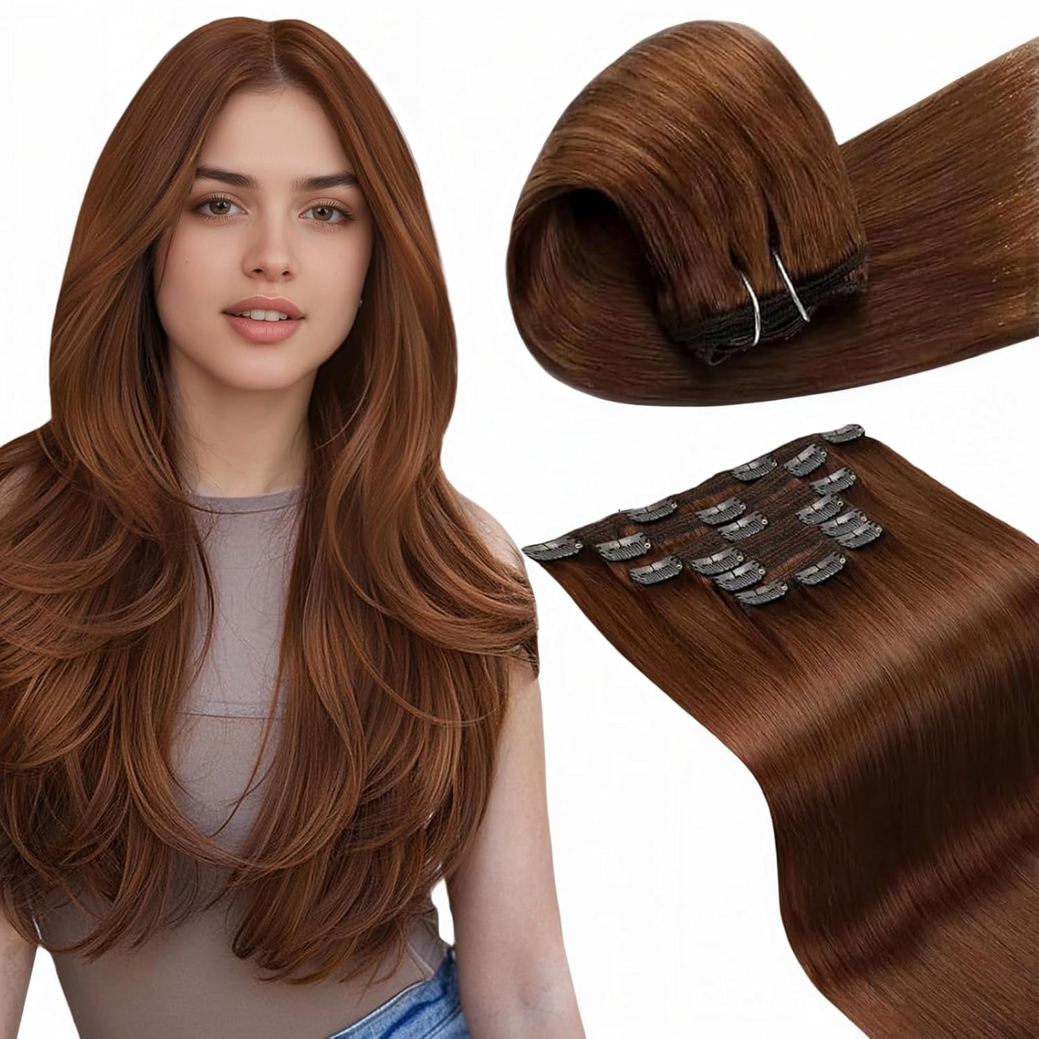 LaaVoo Clip in Hair Extensions Real Human Hair Blonde Ombre Human Hair Clip in Extensions Light Brown to Platinum Blonde Hair Extension Clip ins Silky Straight 18 Inch 5pcs/80g