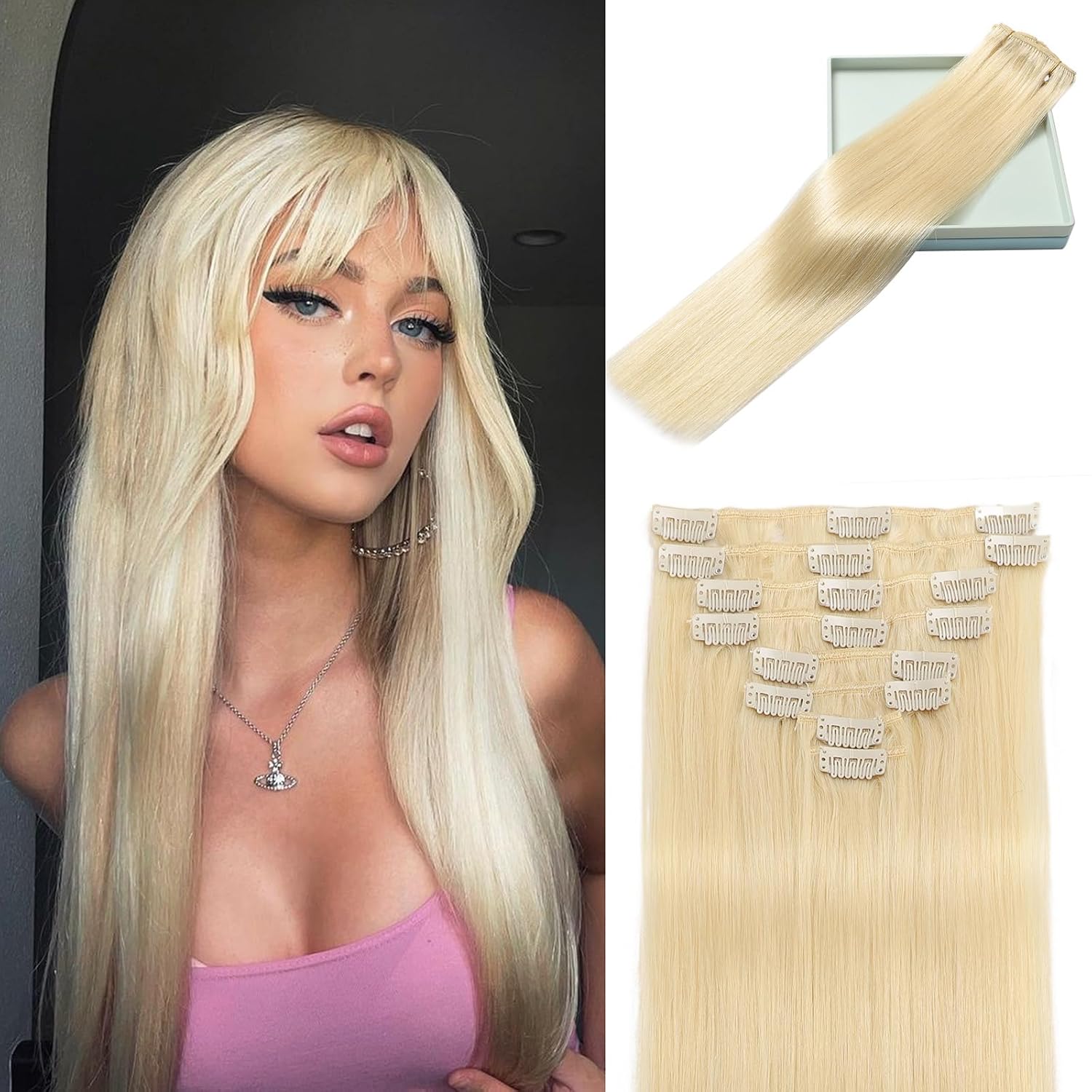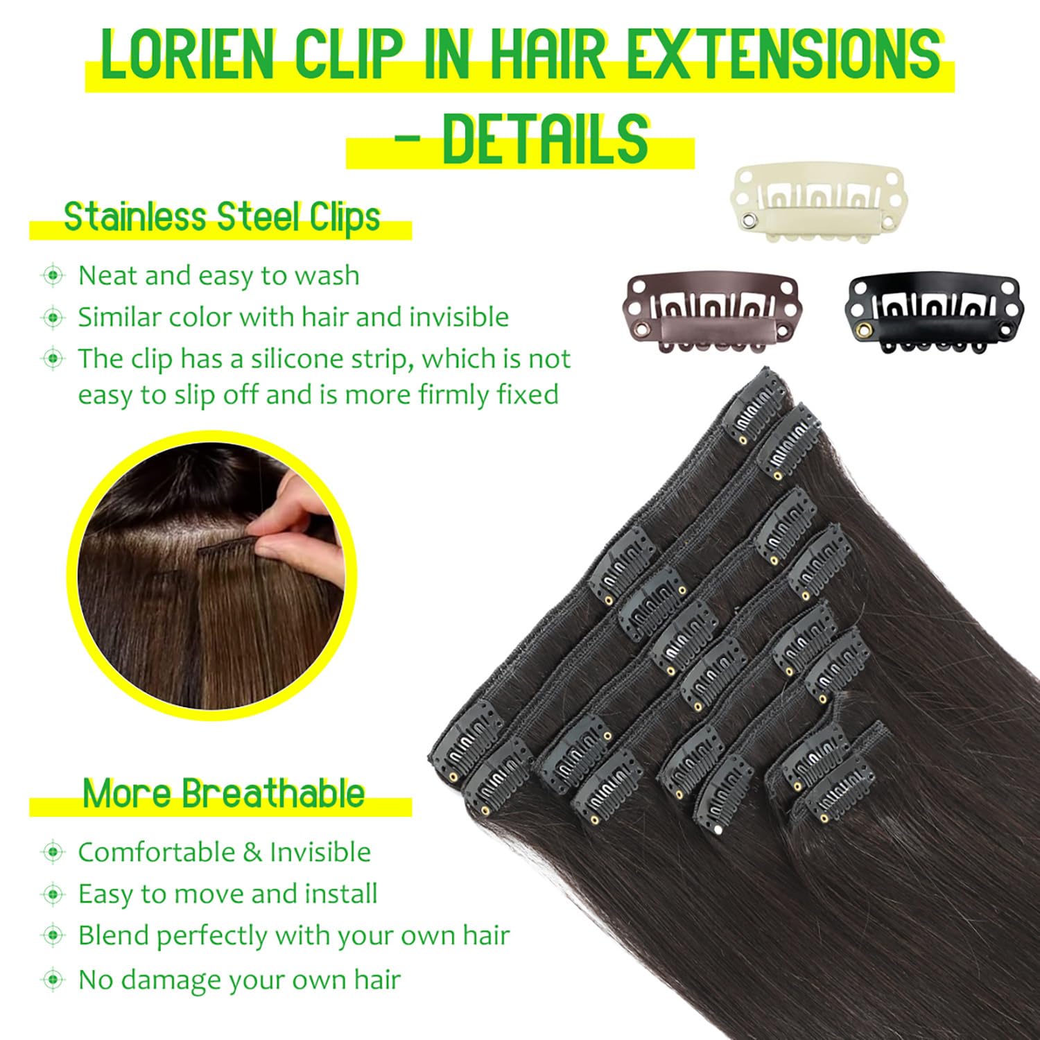 LORIEN Clip in Hair Extensions Real Human Hair, 18 Inch 100g/3.6oz, 1B Natural Black, Clip in 100% Brazilian Remy Human Hair Extensions 8pcs Per Set with 18 Clips Double Weft