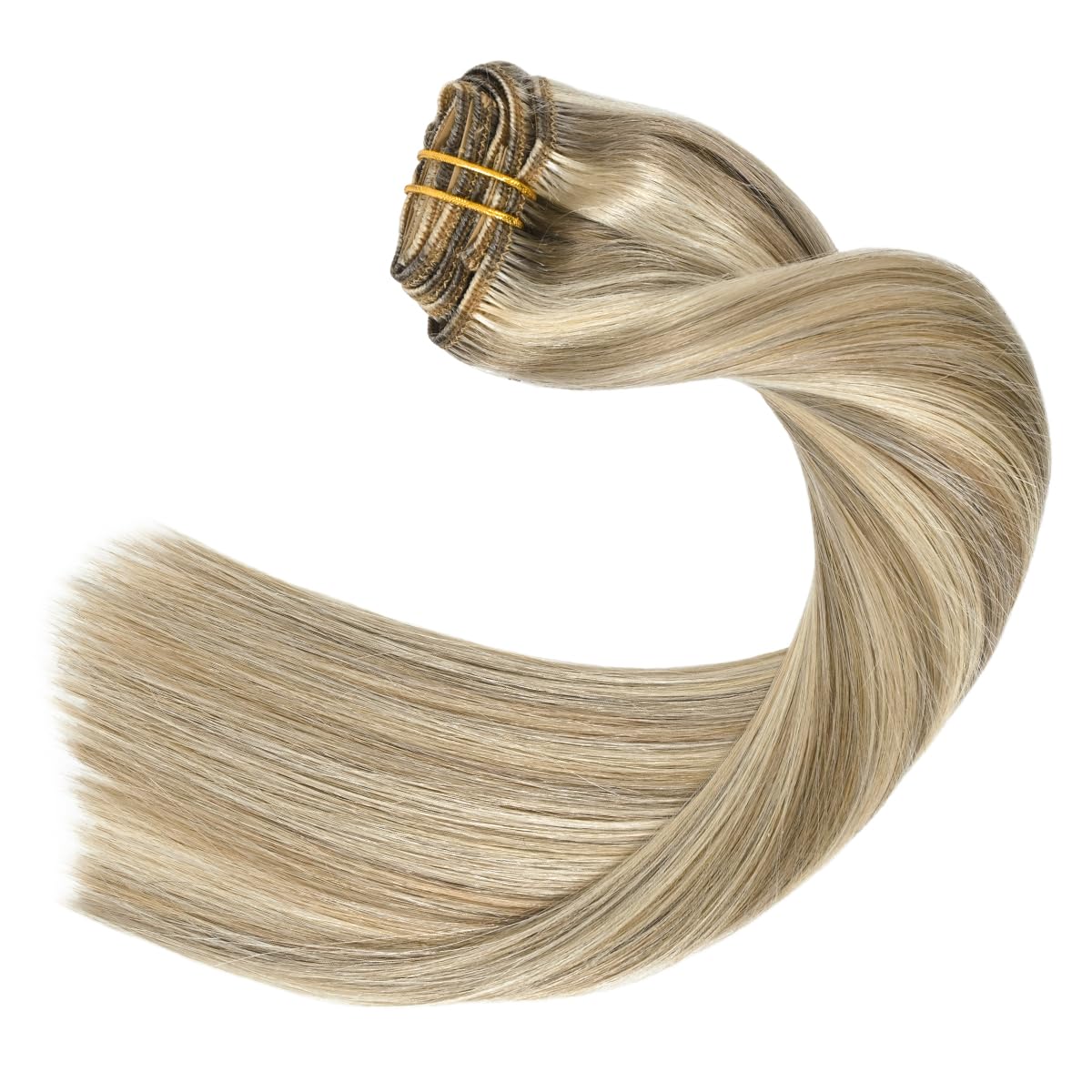 UGOTRAYS Clip in Hair Extensions Real Human Hair – 15 inch 70g Ash Blonde Mixed Bleach Blonde Straight 7pcs Double Weft – 100% Remy Human Hair Extensions #18p613 15inches